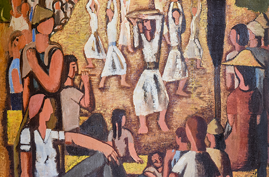 דימוי: יוחנן סימון, חג הביכורים בגן שמואל, 1947, שמן על יוּטה (פרט)