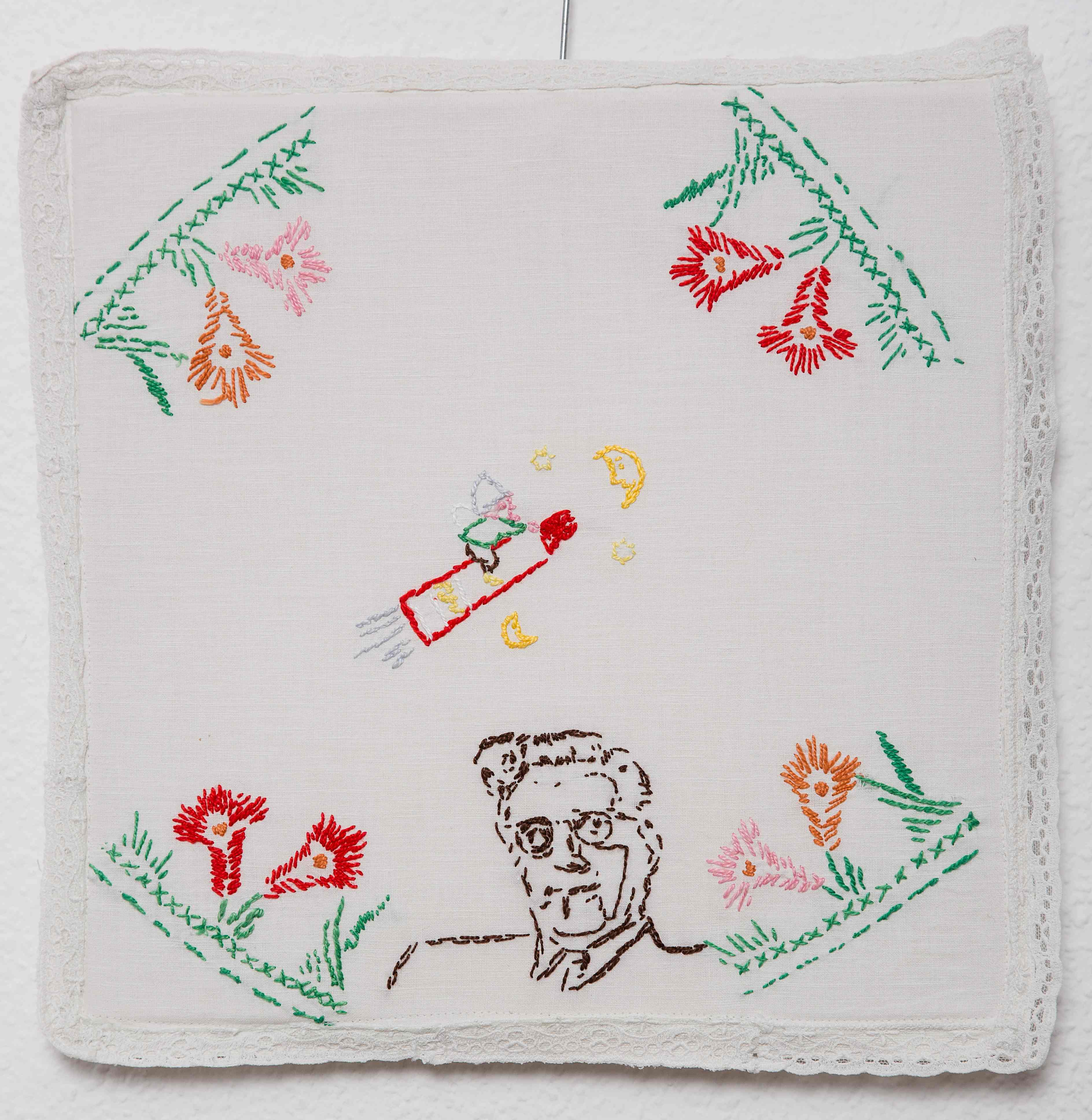 דימוי: יום הדין, 2012, רקמה ידנית על מפית לילדים מהרפובליקה הדמוקרטית הגרמנית